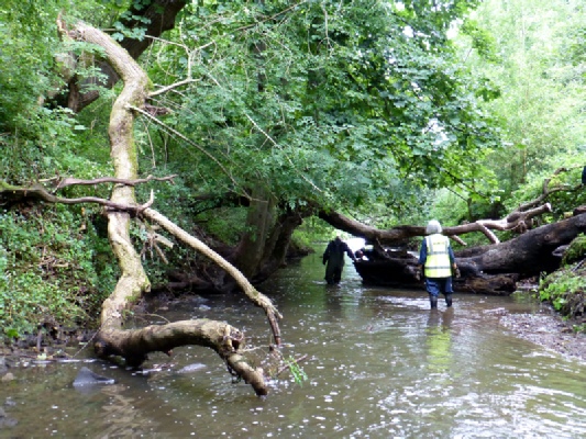 Great care was needed as two of the three fallen trees were supported either by the riverbed or the other fallen trees.
