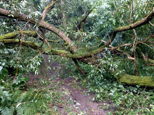 A couple of days later the full extent of the damage, especially to the paths, became obvious. In many cases the stone had been completely washed off the underlying membrane and dangerous holes had appeared. However, there doesn’t appear to have been any trees were brought down.