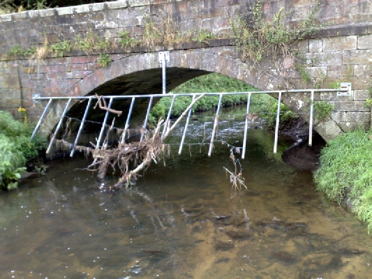 Photograph 1 was taken looking downstream from the stone bridge on the road to Hartley West Farm, around two hours after the rain stopped.