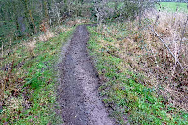 The party divided into two groups. The first group, of five volunteers, re-commenced the path maintenance work started last time out – clearing away the turf encroaching from either side. We cleared from the south-bank path between the dene-top stile near the Crow Hall Farm entrance all the way upstream (and down the dene side) to the upper footbridge. A good, wide, gravel-hardened path is now apparent right along this length.