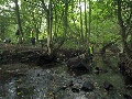 Before we packed up for the day, a check was made for any other problem areas and - would you believe it, another blockage was discovered a little further downstream. This proved to be considerably larger than the one we were asked to clear. It was decided that we were obviously going to have to do something about it at some point so we might as well make a start. Many of the small branches and rubbish were shifted and a gap was cleared for the water to go round at the normal level. What was left was substantial both in the size and amount of it and will have to be tackled at another time.  In this area a slight mishap occurred when a chunk of wood was thrown up the bank. The volunteer fell forward at speed and narrowly avoided ending up with upper torso in the water by extending their arms out in front. Luckily nothing broken, just very muddy knees and a bit of hurt pride. Having fallen face down towards the water with feet trapped in tree roots they were untangled and hauled unceremoniously up the bank, like a large landed trout!