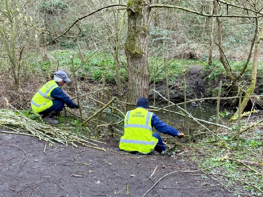 It was willow-weaving near the estuary for this morning’s working party of nine volunteers. The meet-up point was Hartley Lane carpark and the weather (after some initial cloud) was warm and sunny!