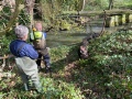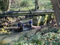 So, it was into the water in wellies to clear all the junk out of the stream with spades. This took quite a while to do, as there was a lot of debris to be shifted. Some litter was removed as well. A couple of logs had to be sawed in half to get them out. A small dam was dismantled also. By the end, the water was flowing nicely.